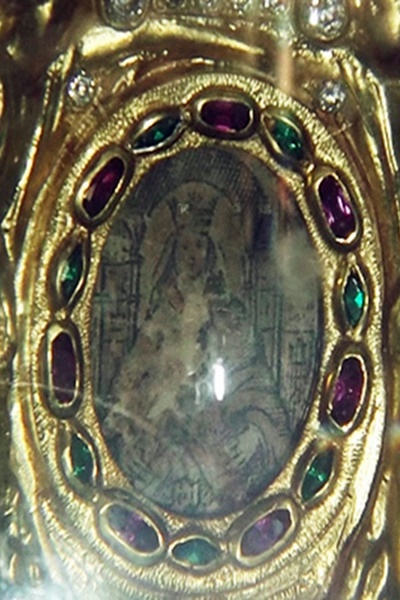 Nessa hora, deu-se o milagre. A brilhante Senhora desapareceu, deixando na mão do chefe da tribo sua diminuta imagem.
